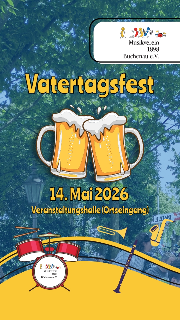 Gute Laune und viel Musik: Das sind die wichtigsten Zutaten, die unser traditionelles Vatertagsfest in der Büchenauer Veranstaltungshalle seit vielen Jahren zu einem beliebten Ausflugsziel machen. Und auch in diesem Jahr freuen wir uns auf unsere Gäste – egal, ob sie zu Fuß, per Rad, im oder mit Bollerwagen anreisen! Denn am Donnerstag, 14. Mai, machen wir unserem Motto wieder alle Ehre: Musik macht Freu(n)de!